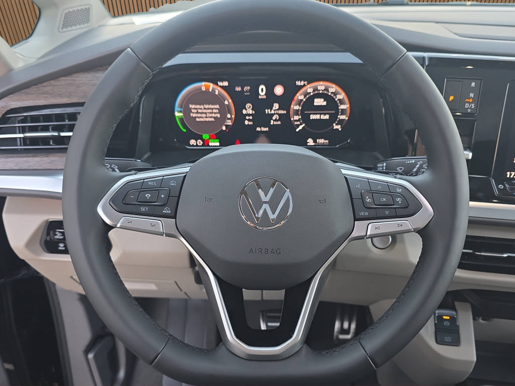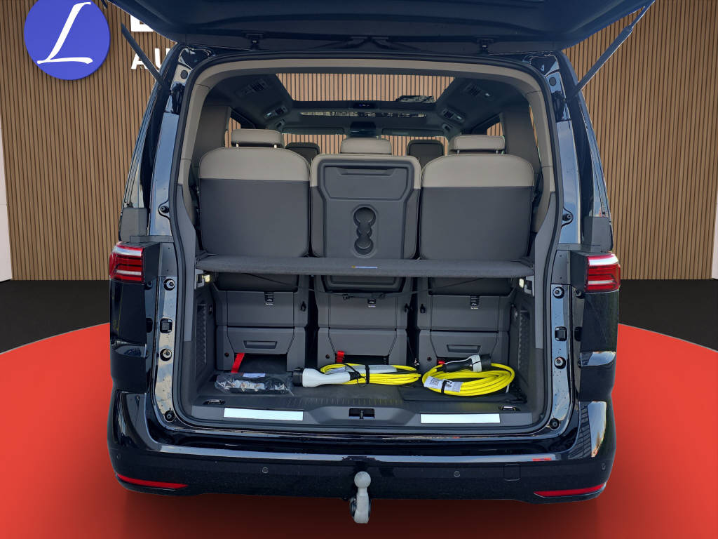 Farbe Deep Black Metallic 5 Jahre Werksgarantie Panoramadach * Anhängerkupplung * ACC * Totenwinkelassistent * Heizbare Frontscheibe * Head-Up Display * Lenkradheizung * Navigationssystem * BULLI Emblem * Travel Assist * Elektrische Schiebetüren *